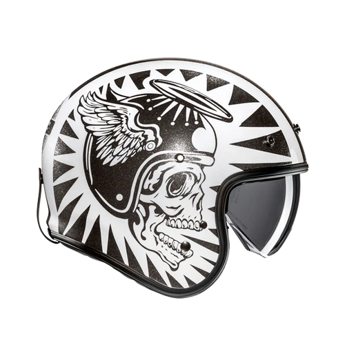 Capacete Jet com visual retromoderno homologado de acordo com a nova norma ECE 22.06. Destaca-se por ser muito compacto e leve. Fabricado em fibra de vidro, possui viseira solar integrada e acolchoamento interno muito confortável com acabamento em couro e camurça costurada. Destaca-se por oferecer um ajuste envolvente muito confortável.