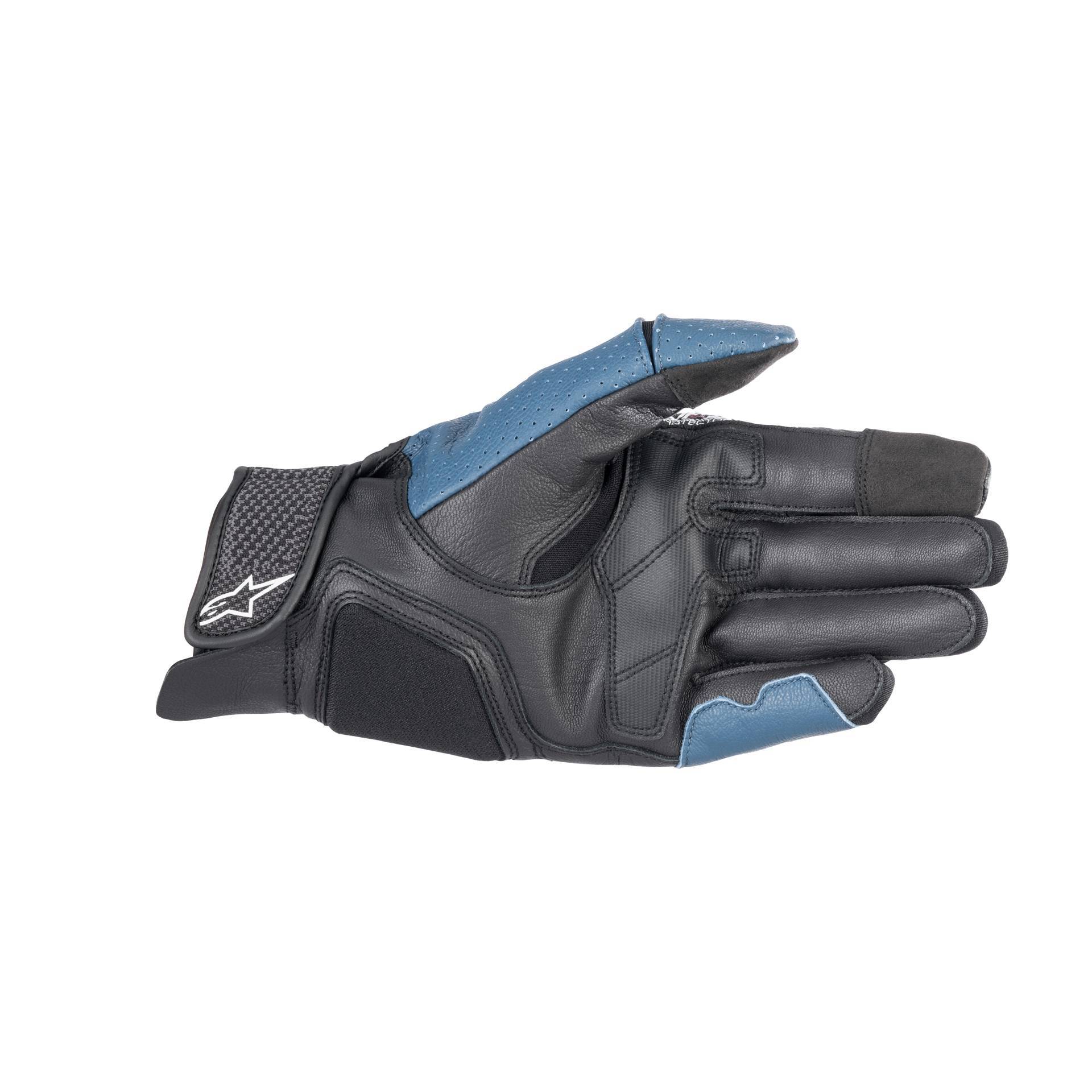 Ponte entre o 4º e o 5º dedos patenteada pela Alpinestars: evita a torção e separação dos dedos em caso de impacto.